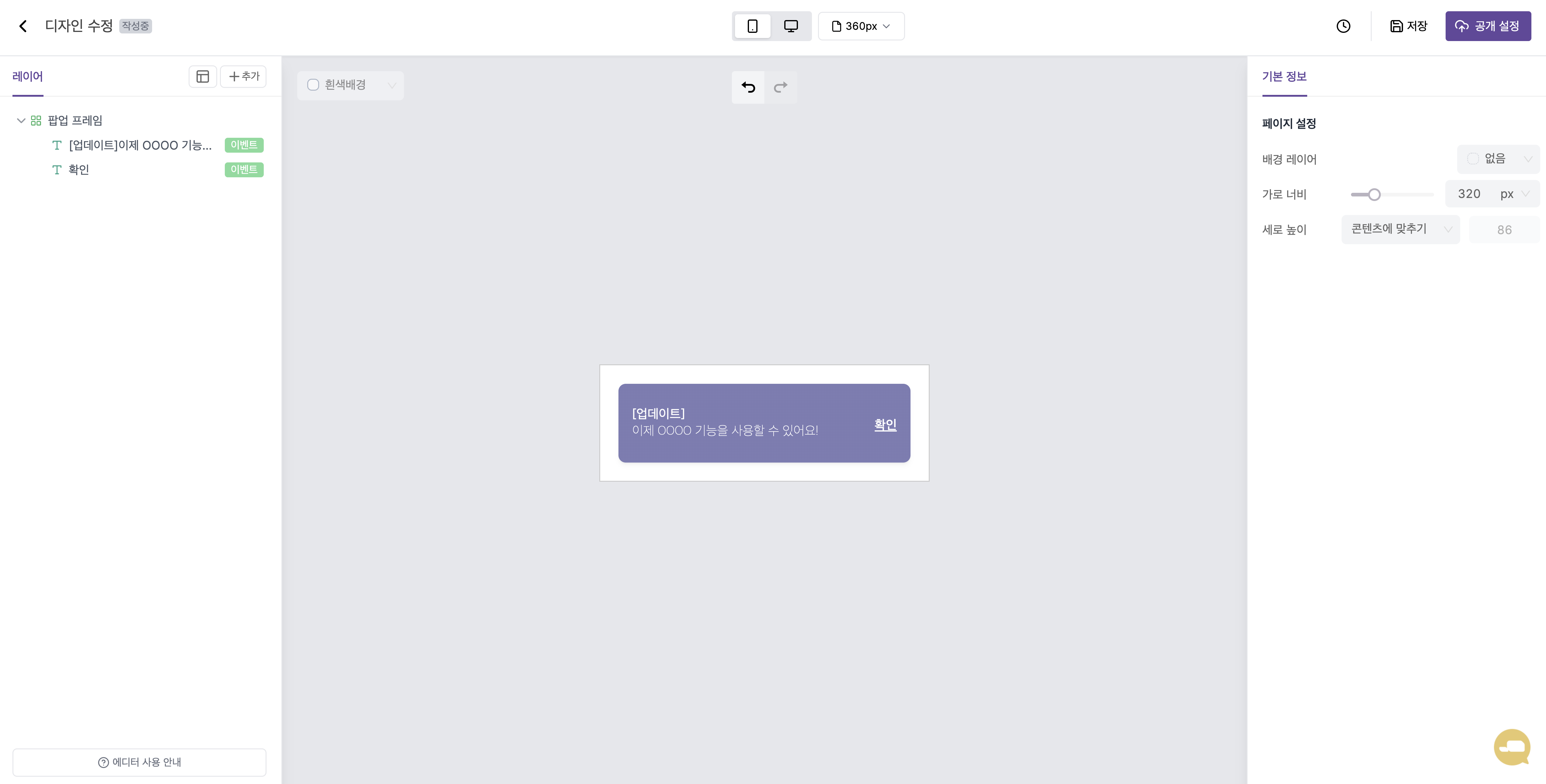팝업을 만들기 위해서 WYSIWYG 에디터를 사용한다. 이게 가끔 예상대로 잘 배치가 안 되기도 하는데, 전반적으로 원하는 모양을 잘 잡아서 배치할 수 있다. 아무리 숙련된 프론트엔드 개발자라도 대충 퍼블리싱 치고 기능 씌우고 하면 시간이 좀 걸리는데, 이건 비교도 안 되게 편하다. 차후에도 팝업 쪽은 개발 리소스를 전혀 투입하지 않으려면 이거 도입하는거밖에 방법이 없겠구나 싶었다.