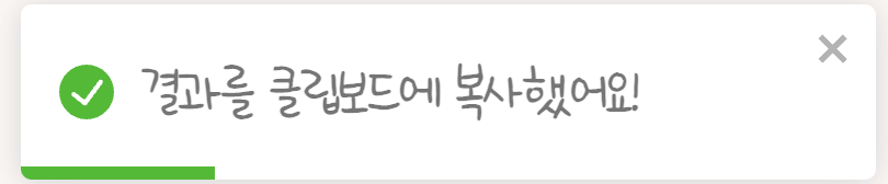 공유하기 버튼은 react-copy-to-clipboard 라이브러리를 사용했고, 버튼을 누르면 미리 지정된 텍스트가 클립보드로 복사되며 Toast Message가 뜨게 된다. 토스트 메세지는 react-toastify 라이브러리를 사용했다.